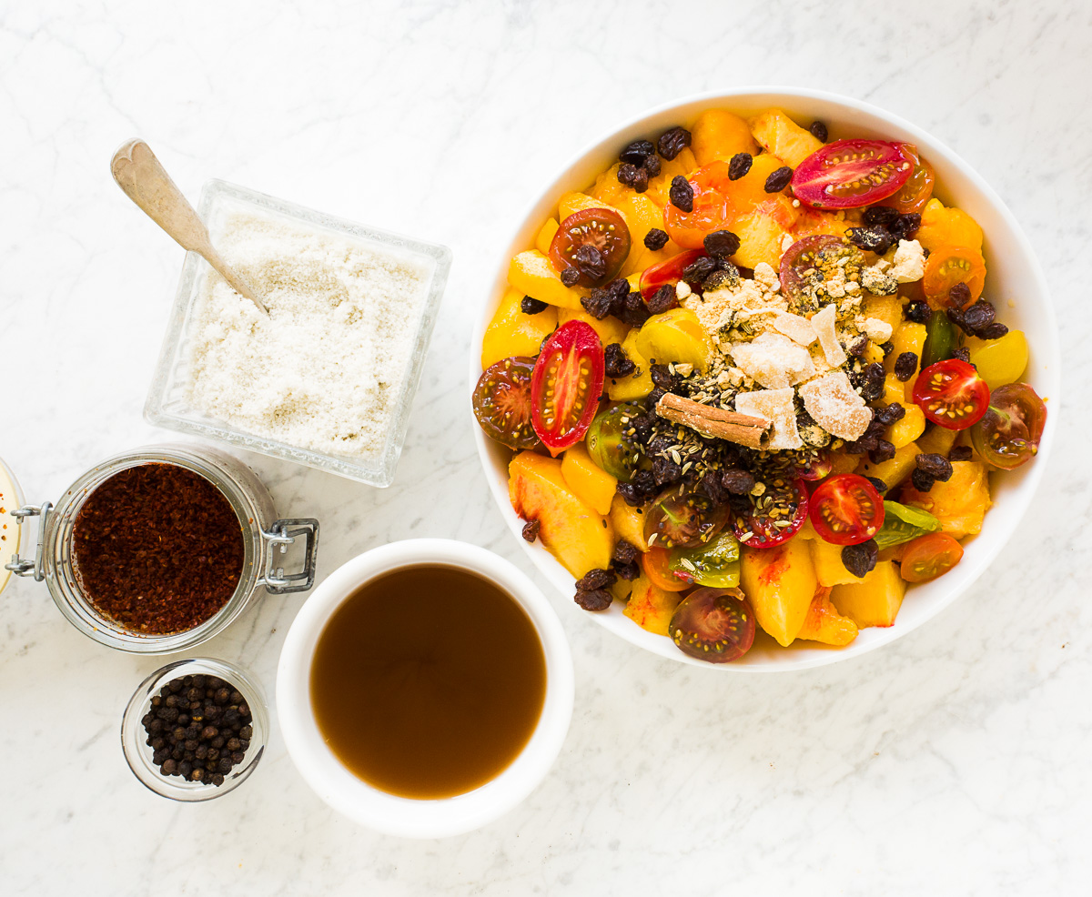 Recipe by The Gardener Cook at https://www.thegardenercook.com/tomato-peach-chutney/